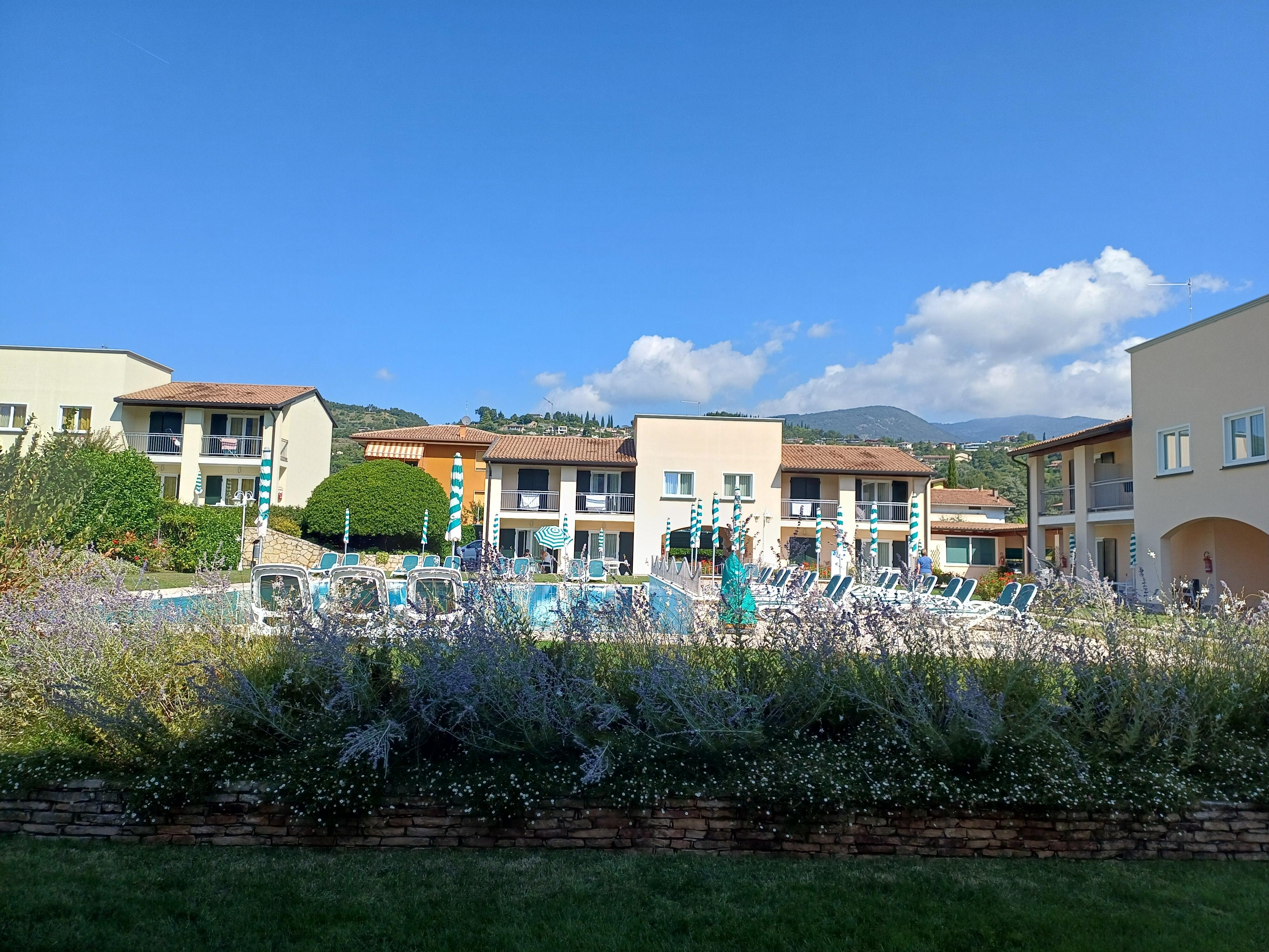 Ferienanlage "Corte delle Rose", auf 2 Stockwerken. 16 Wohnungen in der Residenz. Im Ortsteil Giare, 2 km vom Zentrum von Garda, 2 km vom See. Zur Mitbenutzung: schöner, gepflegter Garten (eingezäunt) mit Rasen und Blumen, Schwimmbad (20 x 10 m, saisonale Verfügbarkeit: 01.Mar. - 31.Okt.). Kinderbecken, Aussendusche, Laube, Grill, Kinderspielplatz. In der Anlage: Tischtennis, Tischfussball, Waschmaschine (zur Mitbenutzung, extra), Heizung vor Ort zu zahlen. Parkplatz auf dem Grundstück. Restaurant 50 m, Bushaltestelle 10 m. Golfplatz (18 Loch) 5 km. Nahe gelegene Sehenswürdigkeiten: Peschiera del Garda 19 km, Verona 38 km.