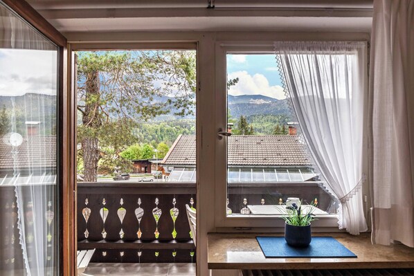 In ruhiger Lage in der Nähe des Waldes von Garmisch-Partenkirchen befindet sich die modern eingerichtete Ferienwohnung Wank mit einem schönen Blick auf die umliegende Alpenlandschaft. Die Ferienwohnung verfügt über ein Wohnzimmer mit gemütlicher Couch, eine sehr gut ausgestattete Küche mit Geschirrspüler und Esstisch, sowie eine Essecke im Wohnzimmer, ein Schlafzimmer (mit TV) und ein Badezimmer. Es bietet somit Platz für 5 Personen. Zur Ausstattung gehören auch WLAN, SAT-TV und eine Waschmaschine im Bad. Die Ferienwohnung verfügt über 2 Balkone (Ost und West) mit Gartenmöbeln, auf denen Sie morgens bei einem Kaffee oder abends bei einem Sundowner die Aussicht genießen können. Die Ferienwohnung befindet sich in ruhiger Lage am Ortsrand von Garmisch, nur 10 Gehminuten von der Wankbahn entfernt. Diese bringt ihre Gäste in wenigen Autominuten auf den Wankberg, den Hausberg von Partenkirchen. Von dort aus haben Sie einen fantastischen Alpenblick (auf die Zugspitze und über Garmisch-Partenkirchen) und genießen parallel ein hervorragendes Gastronomieangebot. Durch die zentrale Lage der Unterkunft erreichen Sie Einkaufsmöglichkeiten, Restaurants und Cafés in nur 5-8 Minuten mit dem Auto (2-3 km). Mehrere Lebensmittelmärkte sind nur 3-4 Minuten mit dem Auto entfernt. Garmisch-Partenkirchen ist der ideale Ausgangspunkt für einen erlebnisreichen Urlaub in der Natur. Hier können Sie Skifahren oder Langlaufen, Wandern oder Fahrrad fahren.