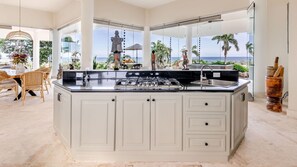 We had planned a chef-prepared dinner for our first night. When we arrived the chef and his helper, along with our bartender, were already here and preparing. There is a separate Chef’s kitchen off the guest kitchen so they are out of sight during prep and clean up. We spent the rest of the night playing pool, lounging in the hot tub and pool, taking sunset pictures on the rooftop patio and eating the magnificent Dominican-themed meal that was provisioned and prepared for us. Perfect.