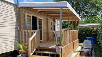 Mobilheim '4 Personen, Klimatisiert' mit Gemeinschaftspool, privater Terrasse und KlimaanlageGastes