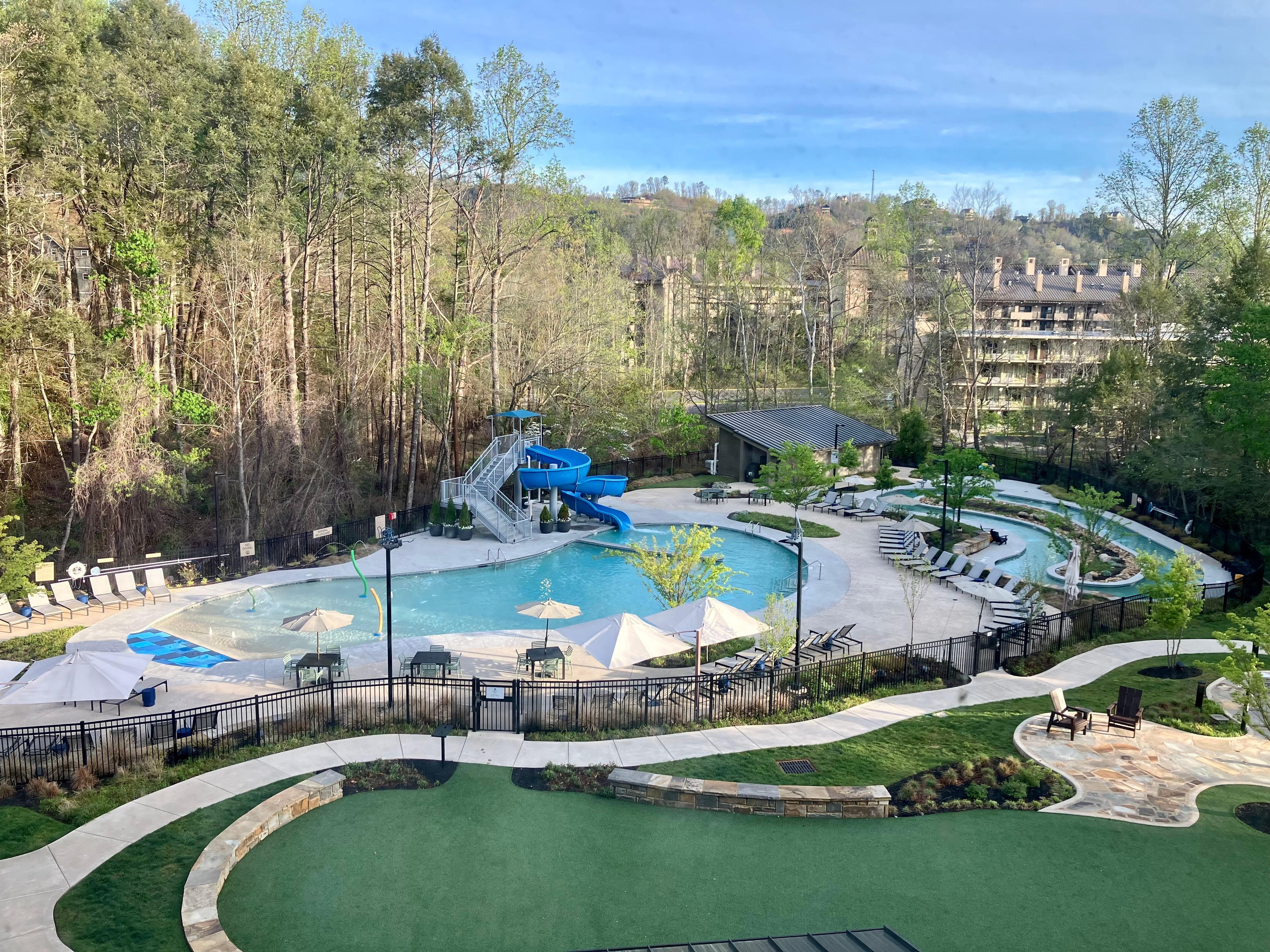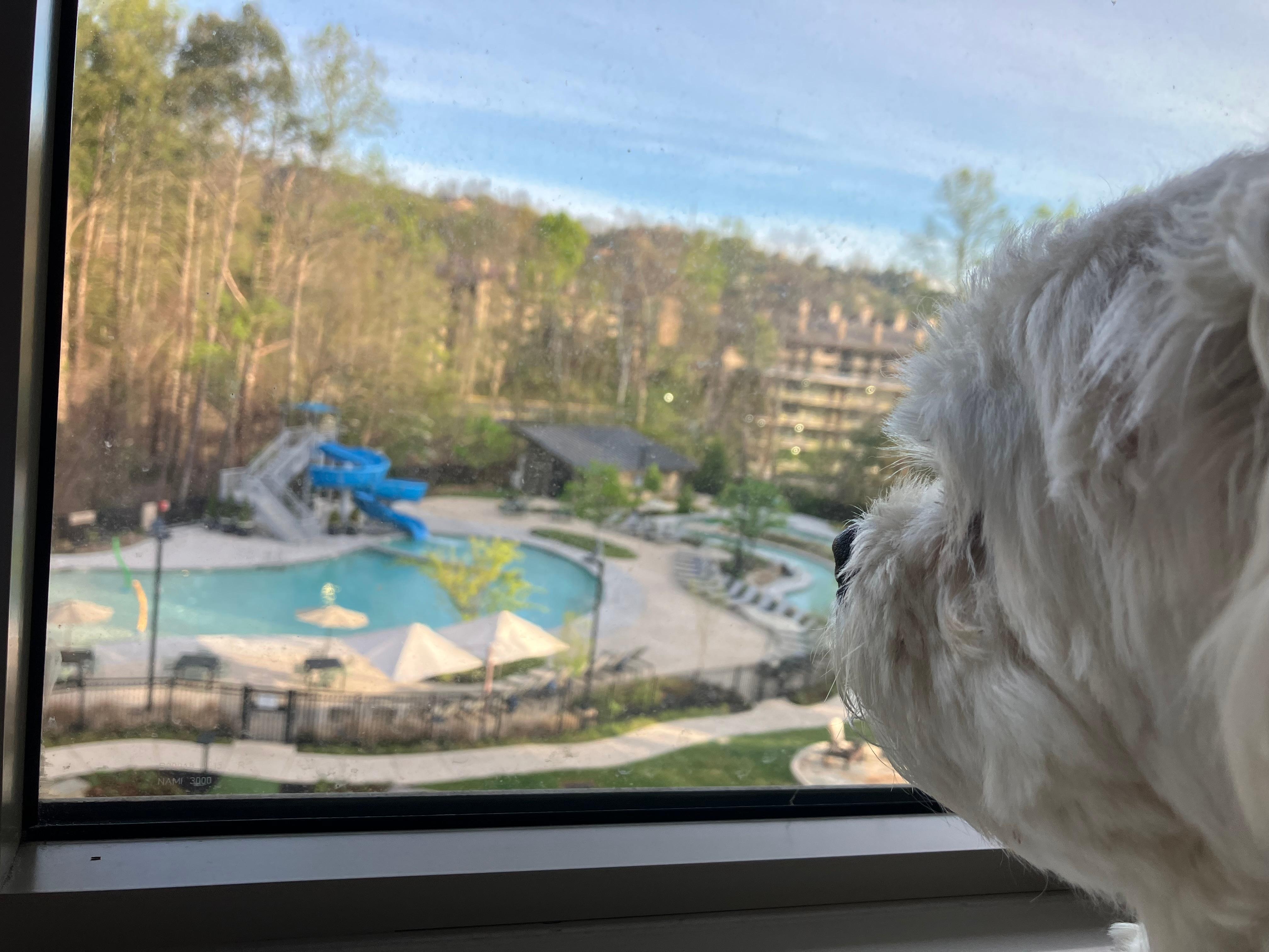We stayed 3 nights which was pleasant & comfortable. Hotel was clean with kid friendly pools. Breakfast was excellent & the afternoon drinks/snacks was enjoyable as well. Our dog seemed comfortable & happy to have a short walk near by the creek. Location was great. Quiet & walkable to down town . Free red trolley stop was nearby. We took trolley to Anakeesta & Ripley’s aquarium. Mynatt park was walkable where our dog and kid had a fun in the creek .