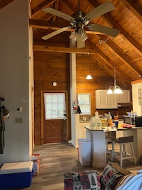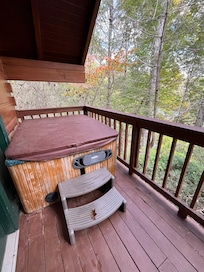 Cute cabin. The location and view were great! The cabin was not as clean as it could have been. There were cobwebs on the ceiling, even in the shower and the ceiling fan was so dusty, I was afraid to turn it on. There was insulation trapped in the floor vents which prevented us from opening three of them, as we didn’t want to breath in those particles. Having them closed made regulating the temperature more difficult. The floor felt sticky, which could have been due to a lack of rinsing well, but there was definitely a spill of some sort next to the bed on the sliding glass door side. The hot tub was mediocre. The jets were weak and the lights did not work. That made the nighttime experience less than great. Please tell me you drain it in between guests as there were particles floating on the water. We are hopeful it was just the treatment chemicals. The grill was very dirty and it is electric (I had expected charcoal from the description), a George Foreman. That was a bummer in itself but then the grill brush for cleaning it was shedding bristles (dangerous!) and the scraper end should not be used on that type of grill or the teflon coating comes off! Finally, a wall or even a privacy screen around the washer and dryer would preserve the aesthetic. It was odd having them in the living room.