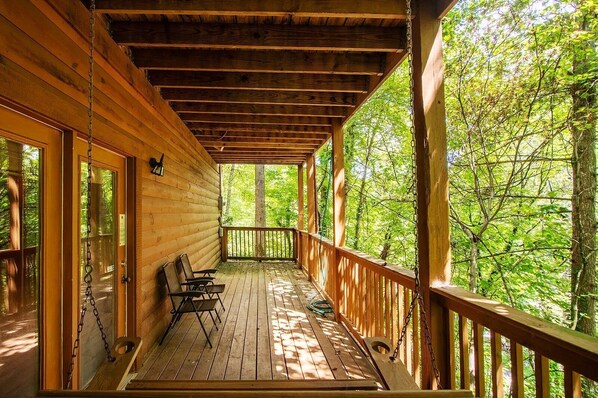 Ready to break away from the everyday grind? Take a break at The Hideaway, a 2-bedroom, 2-bathroom log cabin in Gatlinburg, Tennessee. Pairing rustic mountain details with modern amenities, The Hideaway offers a classic Smoky Mountain experience. Enjoy relaxing, playing, dining, and catching up with family and friends at this cabin for up to 7 guests, about 10 miles from downtown Gatlinburg.