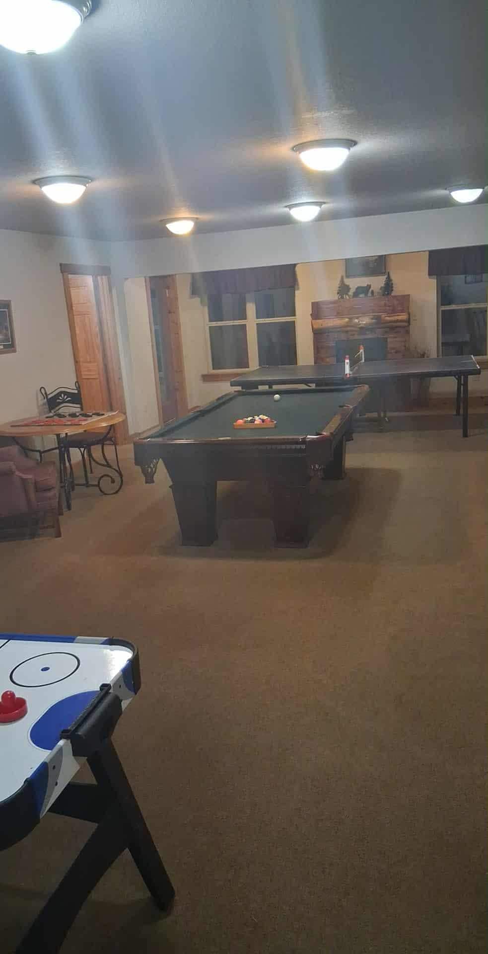 Die zweite Etage ist das Deluxe-Spielzimmer mit einem großen Billardtisch, Tischfußball und Tischtennis. Es gibt einen elektrischen Kamin im Spielzimmer. Es gibt zwei getrennte Schlafzimmer, jedes mit eigenem Bad. Das Schlafzimmer mit Kingsize-Bett verfügt über ein angrenzendes kleines Schlafzimmer mit einem großen Etagenbett (voll / voll). Dies ist ideal für Familien mit Kindern. Neuer 32-Zoll-Flachbildfernseher im Schlafzimmer mit Kingsize-Bett. Es gibt einen Balkon vor dem Spielzimmer für Ihr Sehvergnügen.