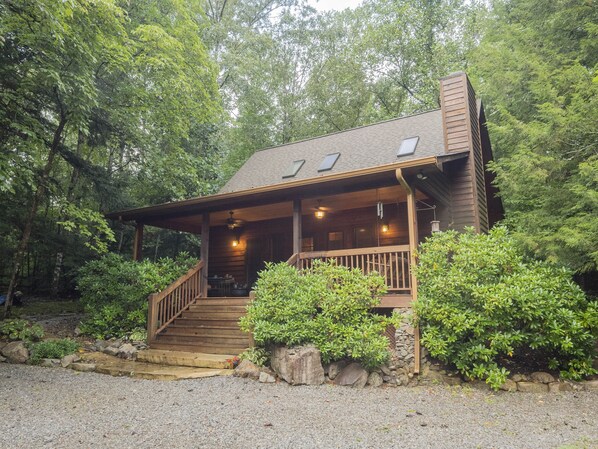 Beautiful mountain cabin with river access. Firepit and wood burning fireplace .