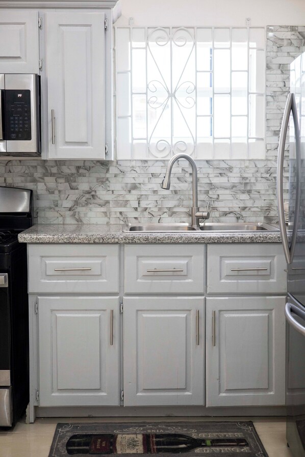 The spacious living area features a living room with 2 Bedrooms and one Bath while the kitchen is equipped with stainless steel appliances and granite countertop. This apartment is fully air-conditioned to keep guests cool.