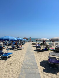Die angegebene optionale Servicegebühr wird pro Tag für den Zugang zum Privatstrand erhoben und beinhaltet einen Sonnenschirm, eine Sonnenliege und einen Strandstuhl. Die Gebühr variiert von 20 Euro bis 30 Euro, je nachdem, in welcher Reihe sich der Sonnenschirm befindet.