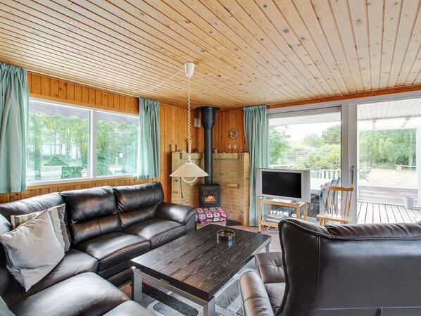 Dieses Ferienhaus am Wasser bietet eine Küche und einen Kamin