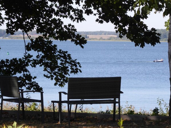 Außerdem haben Sie die Möglichkeit die großzügige Wiese unterhalb der Ferienwohnung zum sonnen, liegen oder entspannen zu nutzen. Von hier haben Sie einen traumhaften Ausblick direkt auf den See.