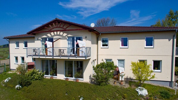 Unsere modernen, wohnlich-stilvoll eingerichteten Ferienwohnungen verfügen über einen Balkon bzw. eine Terrasse, die alle mit einem Strandkorb zum Verweilen ausgestattet sind und teilweise einen herrlichen Blick auf die Ostsee ermöglichen.