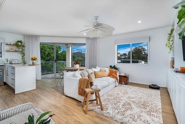 - Open plan living, dining and kitchen