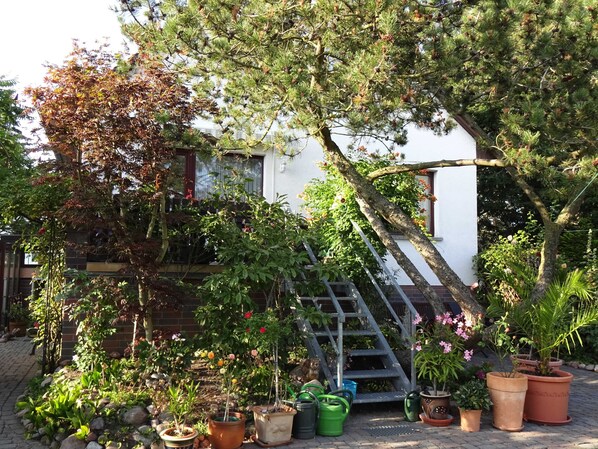 Die Ferienwohnung im Obergeschoß unseres Einfamilienhauses ist ca. 65 m² groß und bietet Platz für 2 bis 3 Personen. Neben dem eigenen Parkplatz (gegen Gebühr) und Fahrradstellplatz können Sie gern die Sitzecke und Liegewiese in unserem Garten benutzen.