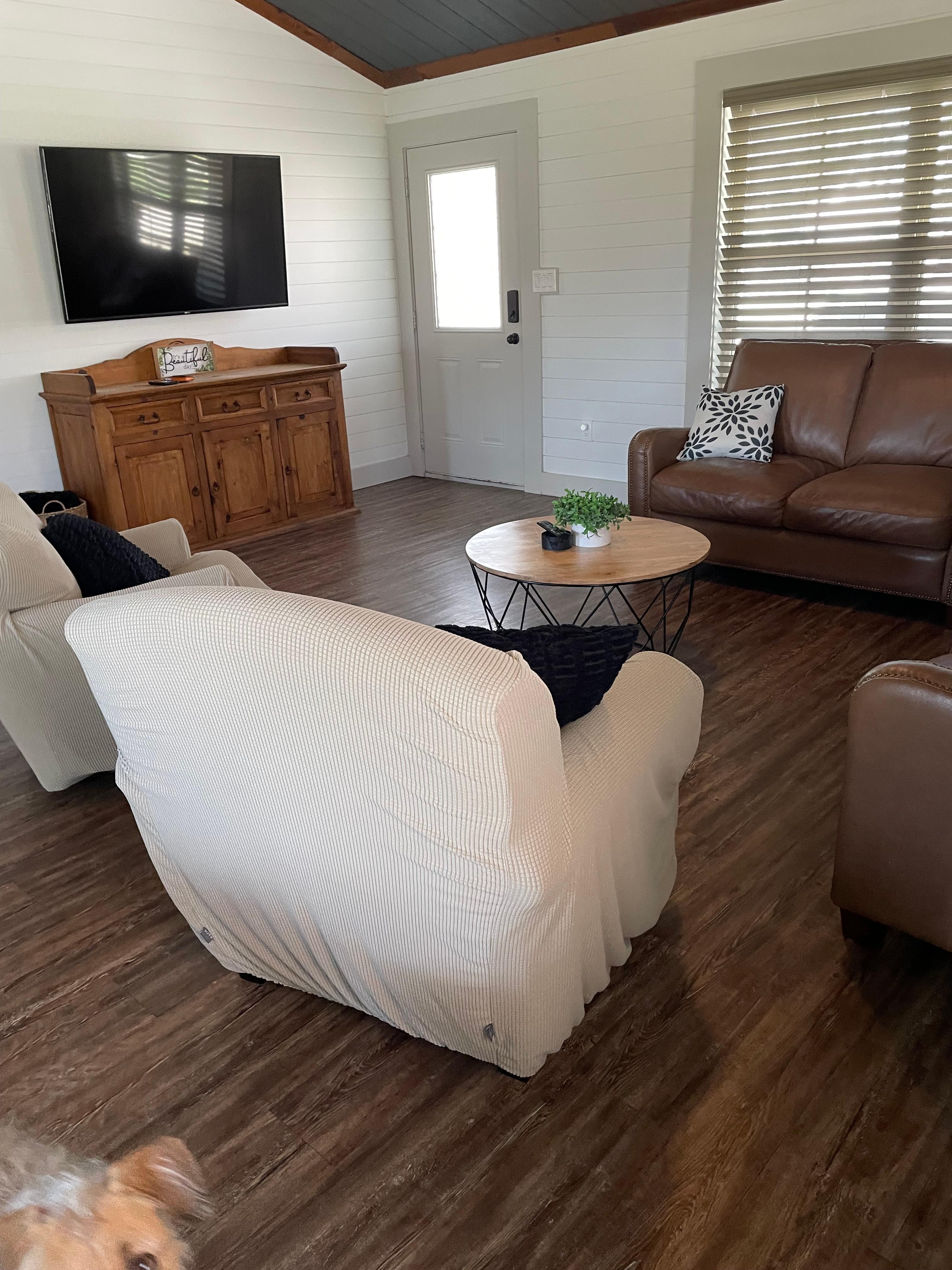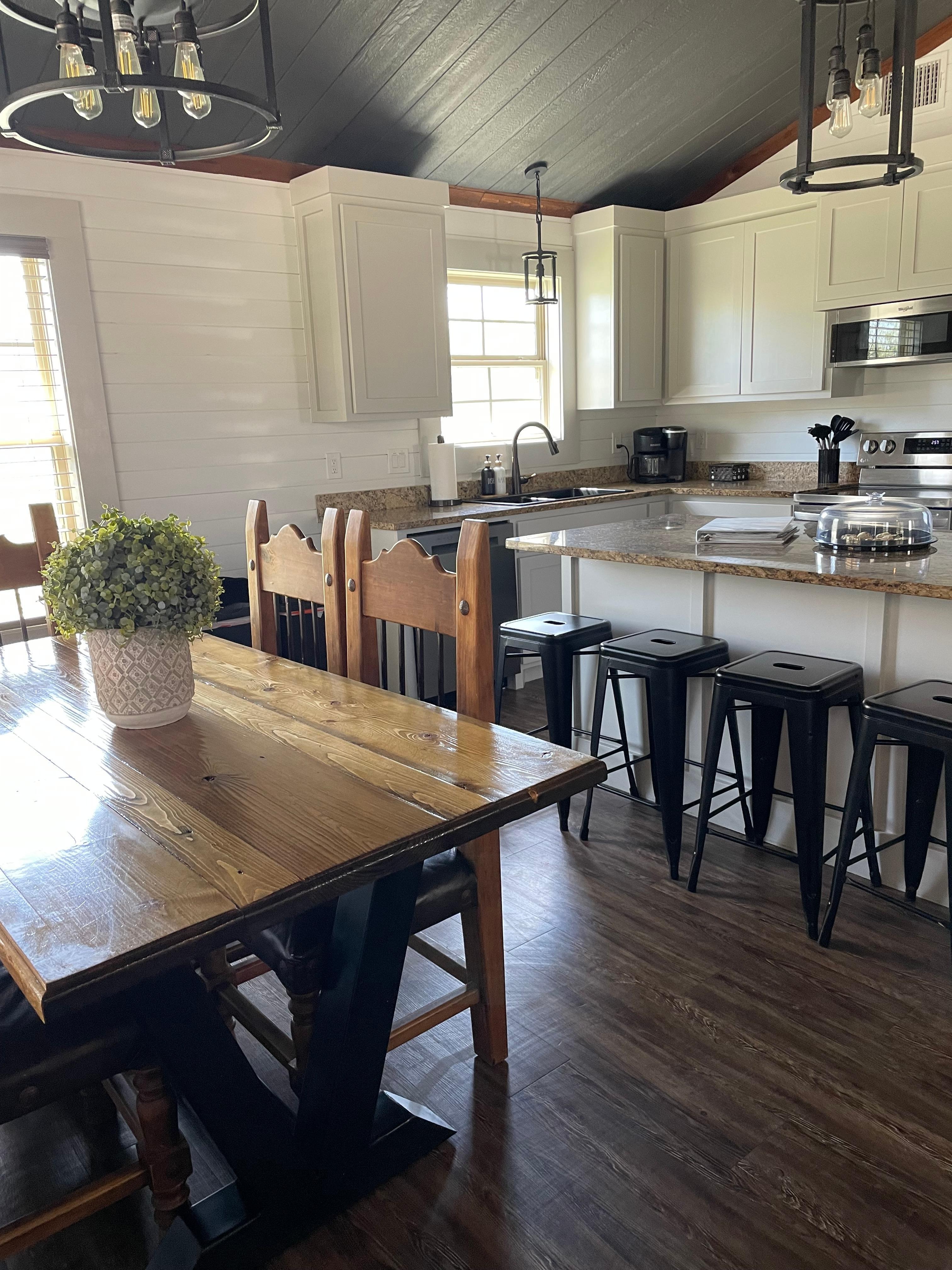 INDOOR LIVING: 4 Smart TVs, dining table, breakfast bar, 2 shower/tub combos, walk-in closets, ceiling fans, board games