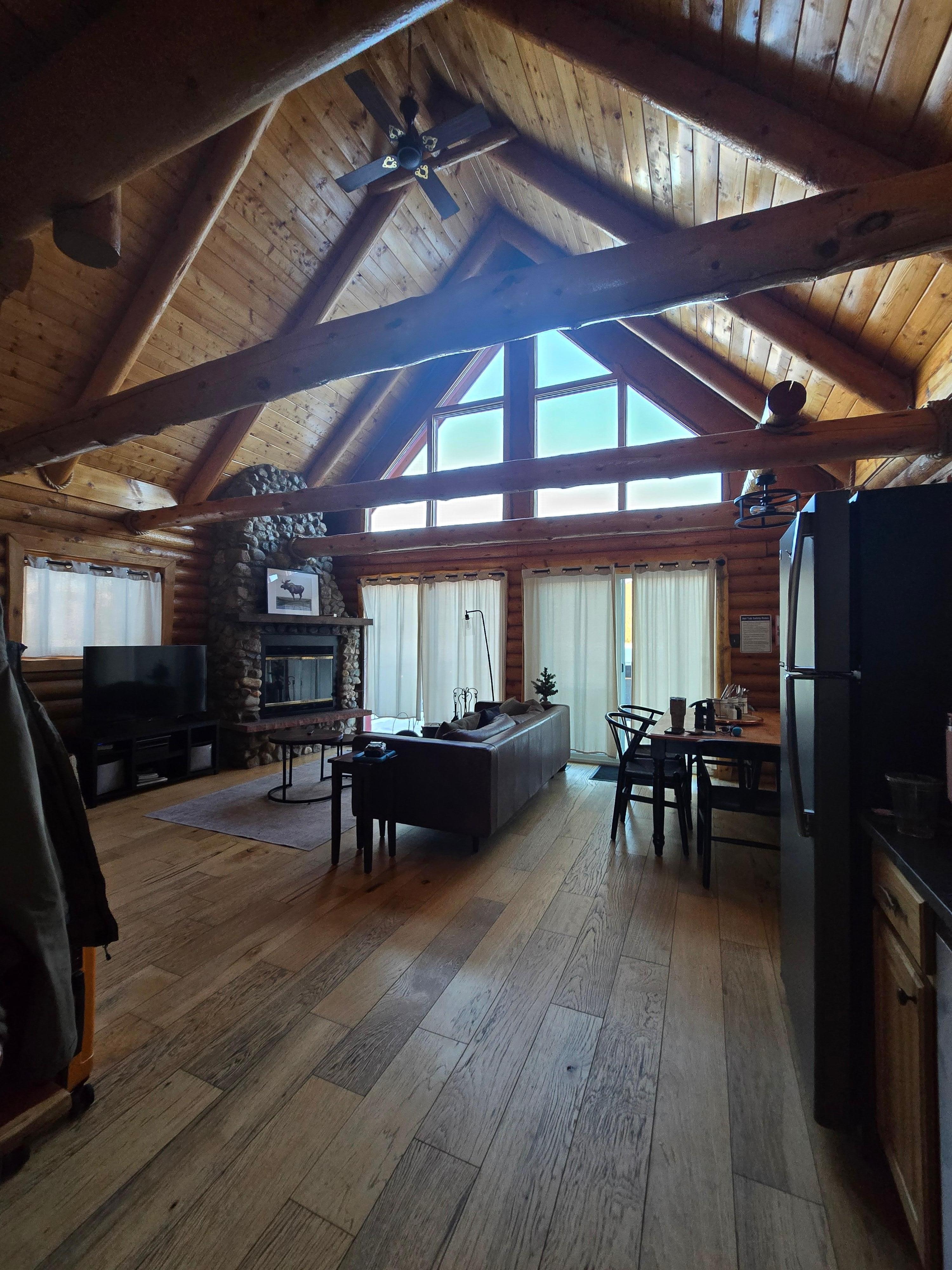 Quintessential cozy A-frame cabin with 1 bedroom and additional Twin over Queen bunk bed upstairs, and 1 bathroom ON THE WATER at the south end of Shadow Mountain Lake. Brand new deck and HOT TUB installed in June 2022!! Nestled on a quiet dirt road and less than 10 minutes from downtown Grand Lake, this cabin has much to offer in all seasons. You'll be able to enjoy the stunning views of Rocky Mountain National Park to the north, and watch the Colorado River join Shadow Mountain Lake just steps from the deck. If you're feeling accomplished, try your hand at numerous trails for all levels of ability and ambition in one of the surrounding wilderness areas (Indian Peaks, Never Summer) or National Forests using our included maps and trail guides. Only 17 miles from Granby Ranch Ski Area and an additional 20 miles to the base of Winter Park Resort, you can get your runs in and return to a cozy cabin and warm up by the fire. If you're looking for a quiet place to relax, you can easily explore over 1,300 acres of surface area in one of the provided water-craft (canoe, kayak or paddle board) on the lake; or even paddle over to one of the 5 islands for a quiet picnic. Don’t forget to drop in a line and snag a mackinaw (lake trout) or a Kokanee Salmon, swimming alongside rainbow, brook, German brown and cutthroat trout. THE BEST SPOT to watch wildlife on the lake, our guests have spotted moose, bald eagles, a rare colony of White American Pelicans, Osprey, and even Bighorn Sheep. The newly refreshed and well stocked kitchen offers a great place to cook and connect with fellow travelers. In the upstairs loft you can put in a few hours of work at the desk while enjoying breathtaking views, or stay downstairs and cuddle-up by the fire while the littles enjoy the “kids nook”. Bustling in the summer, the historic town of Grand Lake also has many offerings for all seasons including historical museums, great restaurants, shopping on the boardwalk, ATV/OHV and Snowmobiling tours, breweries, snowshoeing and nordic trails. If you time your trip right, you may be able to attend one of the town’s signature events like the 4th of July Extravaganza or Grand Lake Regatta Week; or even kick off your fall leaf-peeping adventure.