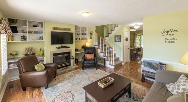 This recently updated two-bedroom, two-bath condo offers stunning lake and harbor views from both levels. The king master suite upstairs features a brand-new screened-in porch, perfect for enjoying morning coffee or evening relaxation with a view, while the second bedroom includes both a queen and twin bed—ideal for families or friends. The spacious living room invites you to unwind by the cozy gas fireplace, with large windows framing the beautiful waterfront scenery. Please note, there is no pull-out sofa in this unit. Entertainment amenities include three TVs with local cable and a DVD player. Situated in the heart of Green Turtle Bay, you’re just steps away from the outdoor pool, tennis courts, spa, and playground, and within walking distance to the ship’s chandlery and boat docks. This is a non-smoking, no-pet unit; however, the owner is a pet owner, and while our housekeepers maintain a high standard of cleanliness, we cannot guarantee it is completely allergen- or dander-free.
