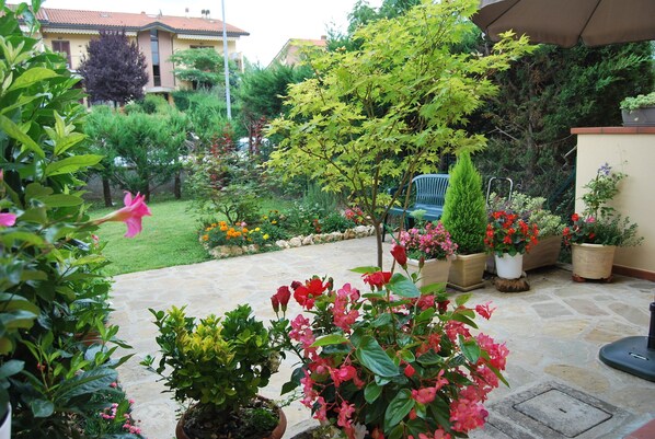 Casa Grazia, ein ruhiges Nest, wenn auch zentrumsnah. Blick auf den Fluss Greve.
