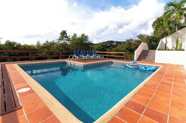 The pool deck offered absolute privacy during my stay and it was a pleasure to relax with a Piton on the shaded loungers.
