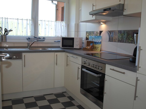 Dieses Apartment in Lühe bietet eine Küche und einen Patio