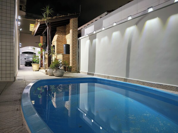 Dieses Ferienhaus für Familien in Guarujá ist mit folgendem Angebot ausgestattet: Außenpool