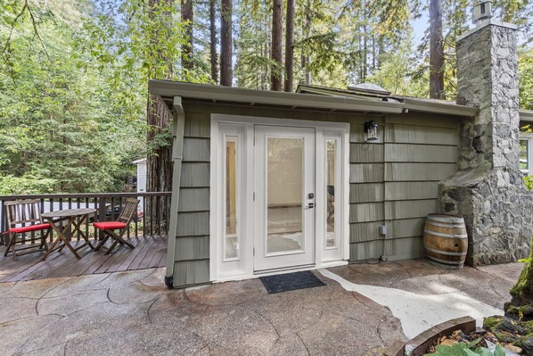 Diese Ferienhütte in Guerneville bietet einen Patio und einen Kamin