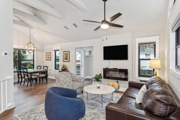 One of the bedrooms has a back door with direct access to the back deck and open grass lot overlooking the canal. Enjoy fishing from the seawall, grilling out on the porch, or just relax with your morning coffee on the back deck. Relaxing is easy here in this quiet neighborhood. Don't hesitate to book your stay today!