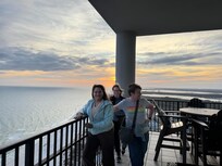 We 8 women enjoyed it immensely!! Nice having 4.5 bathrooms!! The only issue we had was 2 nights there was HIGH GUST of winds from the north, all the sliding patio doors whistled and screeched all day and night long!!! It is much windier up on the 30th floor than once you get to the beach. We were surprised that we needed to purchase toilet paper and garbage bags. Enough for 1 day. Pump hand soap for the bathrooms also. We were there 7 nights. It was absolutely fantastic having 4 bedrooms with plenty of closets too!! Having the open floor concept was nice too, sitting in the living room, up at the island, at the big dining room table and cooking all at the same time was really fun! Naps and reading, relaxing out on the comfortable deck furniture was enjoyable day and night!! No bugs!! It is off season so it gets really quiet at night.