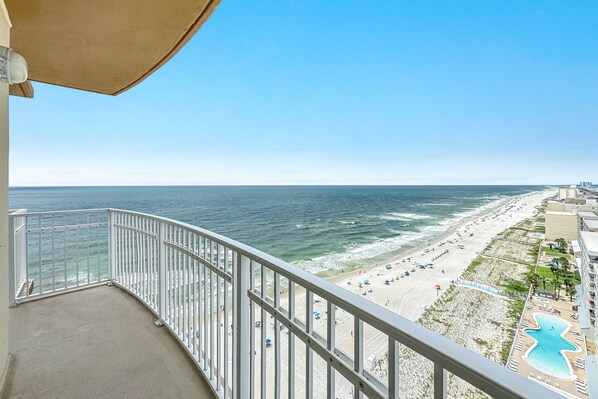Private Gulf-Front Balcony – Enjoy front-row views of the Gulf, perfect for sunrises with coffee or sunsets with a cocktail.