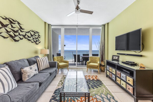 Im achten Stock gelegen, ist das Lighthouse 803 der perfekte Ort, um die Action im Sea-n-Suds, am Pool und am Strand zu beobachten. Sonnenaufgänge werfen sanfte Beleuchtung über die weißen Strände und Sonnenuntergänge werden mit Freude von Ihrem privaten Balkon aus betrachtet. Öffnen Sie die übergroßen Glastüren zu Ihrem Wohnzimmer und Hauptschlafzimmer und lassen Sie Ihre Sinne von der Golfbrise erwachen.