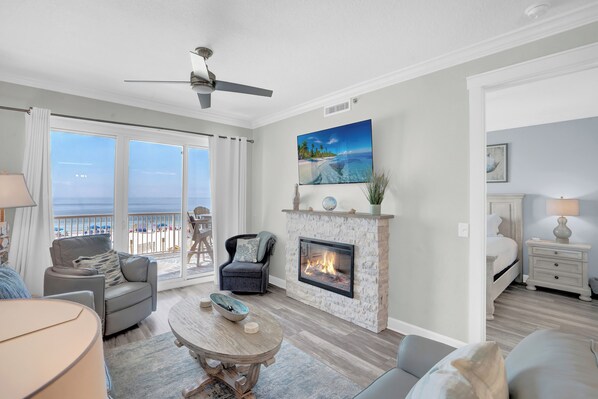 Step outside onto the Gulf-front balcony, furnished with high-quality seating, and immerse yourself in the refreshing sea breeze and stunning views of the Gulf. This is the perfect spot to unwind, whether you're sipping your morning coffee or watching the sun set over the horizon.