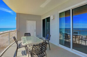 Step out onto your private balcony and take in breathtaking views of the Gulf, the perfect spot to relax with your morning coffee or unwind after a day on the beach. Inside, the open-concept living space includes a dining table and barstools, providing plenty of seating for meals and gatherings.