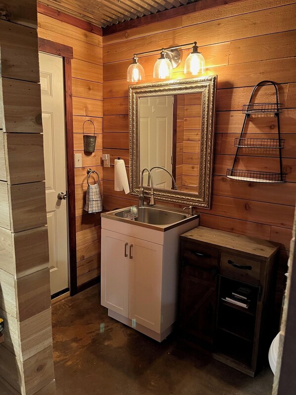 Built in 2020. This "bunkhouse" is attached to our shop in our backyard. The bunk bed is a full on top and a queen on the bottom. The top bunk has a bumper to keep kids from rolling off. A pack-n-play and a children's cot (the size of a crib mattress) is available. We also have two twin-size air mattresses available. Bedding is available for all bed options. Shower only, no bathtub. AC is a window unit, not central. Heat is an electric fireplace, not central. You will have access to a microwave, large toaster oven, and mini fridge. There is also a covered seating area with gas grill on the other side of the shop. This rental is on our property so you will see us out and about in the yard. Our 1.8 acre property is entirely fenced and gated. You will be a 3 minute drive from I-10 and I-12. We are 45 minutes from MSY, 60 minutes from New Orleans, and 45 minutes from Baton Rouge. Enjoy the seasonal gardens and watching the chickens peck. Amenities included yard toys for kids. We look forward to hosting you at our homestead!