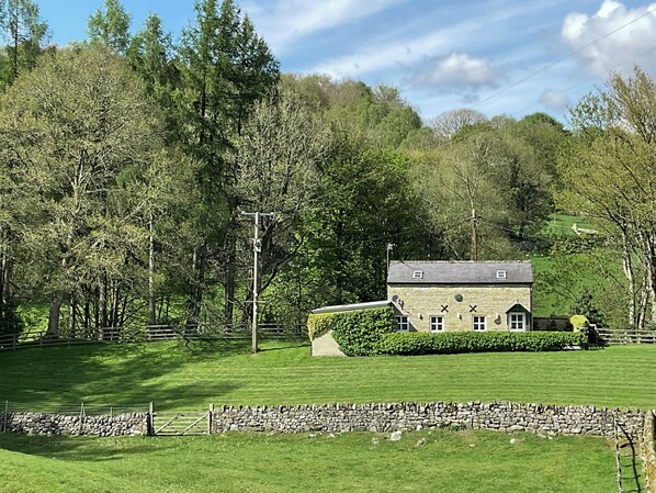 Bedroom: Galleried, Kingsize (5ft) Bed Ensuite: Bath With Shower Over, Bidet, Heated Towel Rail, Toilet. Oil fired central heating, gas, electricity, bed linen and towels included.. Enclosed patio with garden furniture. Private parking for 1 car. No smoking. Sorry, no children under 18 years old.. Nestling in an idyllic south facing location amidst stunning scenery with extensive views this charming detached cottage stands in a tranquil position within the owners private grounds on the edge of the pretty village of Bewerley. Woodside Cottage is reached via a stone flagged pathway across the paddock from the undercover parking alongside the owner’s house which is about 50 yards away. Sympathetically converted from a former granary to provide spacious and very comfortable accommodation which is equipped and furnished to an extremely good standard with quality furnishings and a warm welcoming ambience it is an ideal country retreat for a restful holiday at any time. The pretty private patio is perfect for relaxing and dining alfresco on warm sunny days and evenings and to enjoy the peace and quiet of such a beautiful setting.