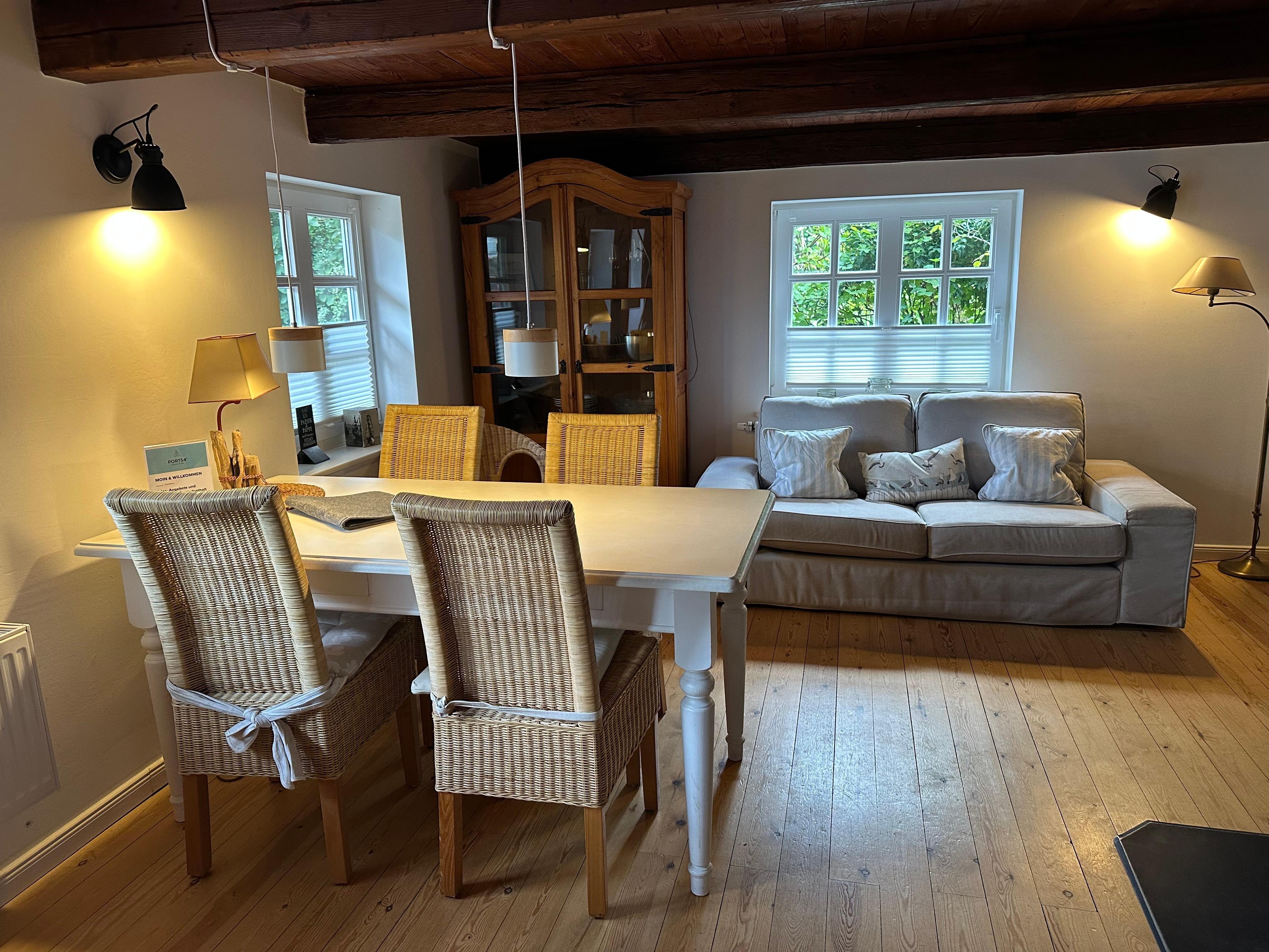 Der Garten ist kinderfreundlich, die Lage ist sehr gut und ruhig. Die Wohnung war sehr sauber. Die Küche ist gut ausgestattet, es gibt genug Geschirr, Besteck, Töpfe und was man sonst noch braucht. Das Schlafzimmer in EG ist gemütlich und hat ein Fliegengitter was zum Lüften sehr sinnvoll ist! Das Schlafzimmer im OG ist sehr geräumig aber leider knarrt das Doppelbett bei jeglicher Bewegung sehr stark, das Fliegengitter ist leider schon länger unbrauchbar! Fliegengitter in allen Fenstern wären sinnvoll. das Bad ist sehr klein für mehrere Personen und es fehlen Handtuchhalter, WC- Rollenhalter und eine Ablagemöglichkeit für Seife und Shampoo in der Dusche, außerdem war der Duschvorhang viel zu klein, der Kontakt zur Agentur war leider anstrengend, im Wäschepaket war ein großes Bettlaken für ein Doppelbett so das man leider für das andere Einzelbett im OG kein Laken hatte, Spülmaschinen Tabs fehlten, außerdem war das Fliegengitter im Schlafzimmer OG schon länger zerrissen. Trotz Bitte am Einzugstag ein neues Fliegengitter einzukleben dauerte 4 Tage bis sich jemand von der Agentur meldete. Der Kontakt zum Vermieter war sehr freundlich und leider wurde der Vermieter über das Fehlen der Handhaken, zu kleinen Duschvorhang usw. nicht informiert.