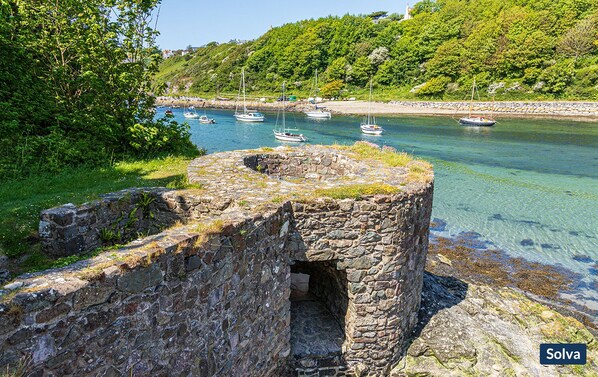 Alma Cottage is a charming traditional stone mid-terrace cottage set on a quiet no-through lane in the heart of the seaside village of Upper Solva with lovely views from the bedroom over the headland and out to the sea of St Brides Bay. Sympathetically renovated, this quaint cottage has beams, low doorways, super sash windows, quarry and wooden floors throughout. Comfortably furnished in a mix of modern and vintage pieces, the hallway leads through to the open plan living space with kitchen galley, comfortable seating and a dining table, it makes a cosy space with its underfloor heating, this opens to a clever scullery area with dishwasher, fridge, freezer and Belfast sink. Steep stairs lead from the living space to the gorgeous double bedroom above a lovely light space with super sea views over the trees and headland. Double wooden doors open to a hidden single bedroom and a shower room beyond, giving flexibility or space for a child.Once you arrive, you can relax and forget your car with everything you need within walking distance. There is a well-stocked village shop in Upper Solva and a village pub with further shops, pubs, restaurants and galleries clustered round the picturesque harbour in Lower Solva, a short downhill walk away.With the Pembrokeshire Coastal Path on your doorstep, it is ideal for keen walkers looking to explore this stunning, rugged coastline round St Brides Bay with breathtaking views of the Islands of Ramsey, Skokholm and Grassholm. While sailors, paddle-boarders and kayakers will love the sheltered sandy-bottomed harbour, take to the water to enjoy a totally unique perspective. Head west to the tiny City of St Davids with its majestic Cathedral and Bishops Palace, there are a range of shops, pubs and cafes to discover, while the award-winning beach of Whitesands is popular with families and surfers alike. A boat trip from St Justinian’s is a must of any holiday, heading round the island of Ramsey or land on it to explore its unique flora and fauna, a special time of year is September with the seal pups.To the East lies the long sandy beach of Newgale, also popular with surfers professional and beginners alike, as well as other water sports enthusiasts.Alma Cottage is a wonderful retreat whatever the season, ideal for just a couple or a small family to discover this beautiful part of Pembrokeshire.Please note the double room leads through to single bed and shower room.