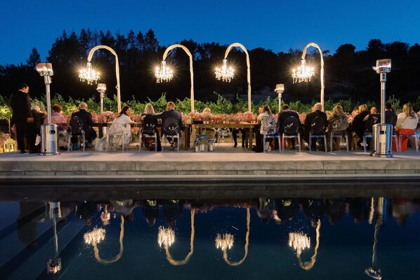 Ensuring utmost privacy and security, the property is gated with two coded entrances and is enveloped by acres of sprawling vineyards. As part of the Farm Stay experience, guests are welcome to savor fresh vegetables and herbs from the garden, as well as delight in farm-fresh eggs provided by the resident chickens. For those interested, private wine tastings and farm-to-table catering/dinners can be arranged during your stay, offering a truly immersive taste of wine country living.
