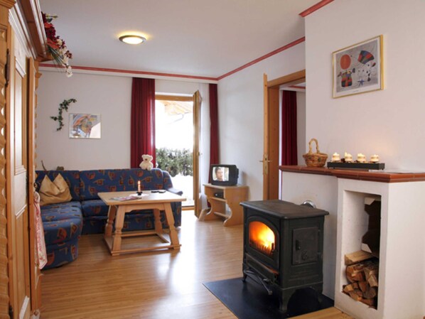Im Wohnbereich können Sie es sich bei dem Kaminofen gemütlich machen und den Tag Revue passieren lassen.