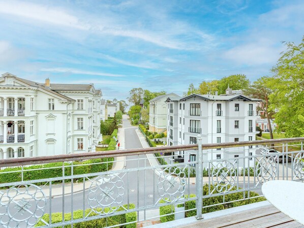 Die Ostsee im Blick und wunderschöne, weiße, alte Villen Allein das ist schon Erholung. Und dieses kleine Urlaubsparadies in der zweiten Etage der Villa Amelia tut für Ihre Entspannung ein Übriges. Die exklusive und elegante Einrichtung nimmt sie mit auf eine Reise in die luxuriöse Kaiserzeit. Dazu kommt viel Komfort und Gemütlichkeit. Das offene Wohn-Esszimmer besticht durch viel Weiß und die Liebe zum Detail. Natürlich gehören zum Wohnzimmer auch ein Flat-TV und eine Mediaanlage. Bis zu vier Personen ( 3 Erwachsene [&] 1 Kind bis 15 Jahre) können sich hier eine schöne und gemeinsame Zeit gönnen. Platz ist für sie nicht nur in den beiden Schlafzimmern mit den Boxspringdoppelbetten, sondern auch auf der schönen Vintage-Sitzgruppe oder am Esstisch. Die offene Küche ist voll ausgestattet. Auch mit Geschirr. Das mondäne Tageslicht-Badezimmer besitzt eine Dusche, ein WC und einen Waschtisch. Für Ihren Komfort sind die Betten bezogen und Handtücher liegen bereit. Das WLAN Netz im Haus kann kostenfrei genutzt werden. Zum Appartement gehört ein Pkw-Stellplatz am Haus.