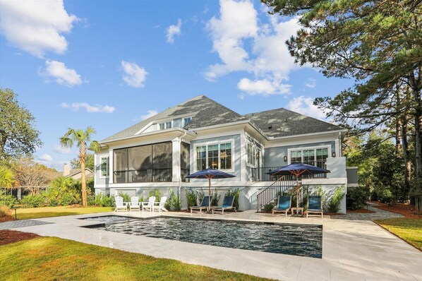 Welcome to 4 Rum Row, a brand-new luxury vacation rental in Palmetto Dunes! This stunning 5-bedroom, 4.5-bathroom home is the ideal retreat for your next Hilton Head getaway. From its spacious open floor plan to its luxurious amenities, including a private pool, hot tub, and serene lagoon views, this property promises an unforgettable stay.