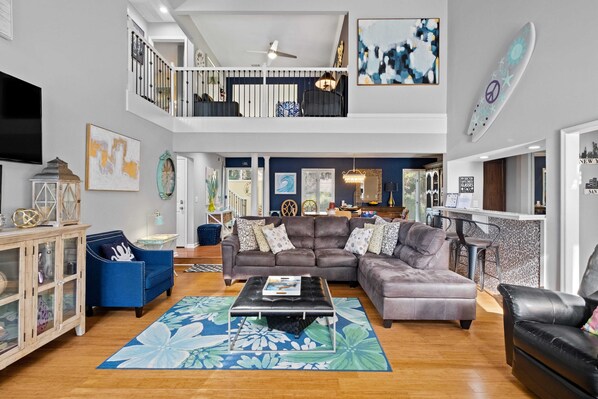 The house is perfect for entertaining family and friends, includes open floor plan with vaulted ceiling, wet bar, large patio with gas grille, and outdoor shower.