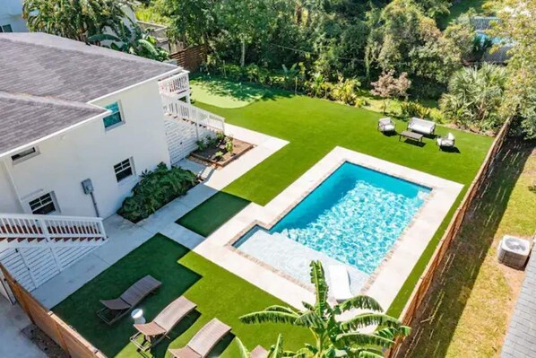 Updated 4th row beach home, private pool, fenced in yard, and putting green!