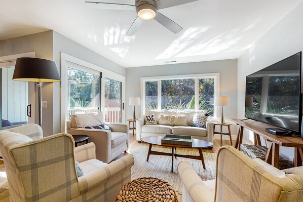 Delight in fantastic resort amenities such as a shared pool, a tennis court, and two pickleball courts offering plenty of outdoor fun. Multiple golf courses are nearby including Shipyard, Arthur Hills, and George Fazio's. If the kids are with you, they won't be left out as Legendary Golf and Pirates Island Adventure Mini Golf are just a few miles away. Coligny Beach Park and the beach are only about a mile and a half away.