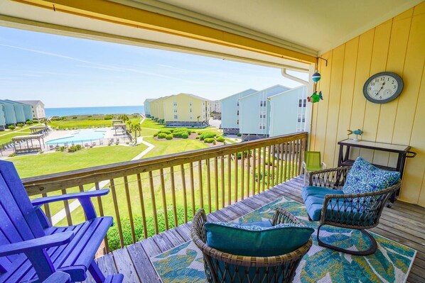 Alle Zimmer bei Beach-View Condo w/ Deck, Pool & Shops Nearby bestechen durch Annehmlichkeiten wie eine Klimaanlage sowie Ausstattungsmerkmale wie Esstische und Internetzugang.