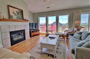 Im Obergeschoss im Erdgeschoss liegt die Wohnräume und viertes Schlafzimmer. Der Wohnbereich verfügt über eine voll ausgestattete Küche mit einer großen Insel enthält Bar Sitz; Dieser Bereich ist für den Koch Firma zu halten. Die zur Verfügung gestellten Wasserfiltersystem bedeutet, dass es keine Notwendigkeit, zusätzliche Flaschen Wasser zu bringen! Ein großer Esstisch, zuvor acht, bietet ein großartiger Ort zu speisen, während in endlosen Ozean Aussicht. Der Wohnbereich ist mit Glas-Schiebe-Türen aus dem oberen Deck Dehnung der Länge des Hauses zentriert. Der Wohnbereich verfügt über ein bequemes Sofa Schlafsofa mit Sitz Liebe, Stühlen und einem großen Flachbild-TV mit Roku. Schöne Holzböden zieren die obere Ebene. Das vierte Schlafzimmer, neben dem Wohnbereich befindet, verfügt über ein Doppelbett und eigenem Deck-Zugang. Ein halbes Badezimmer befindet sich auf dem Flur, der sowohl den Hauptwohnbereich als auch das vierte Schlafzimmer beherbergt.