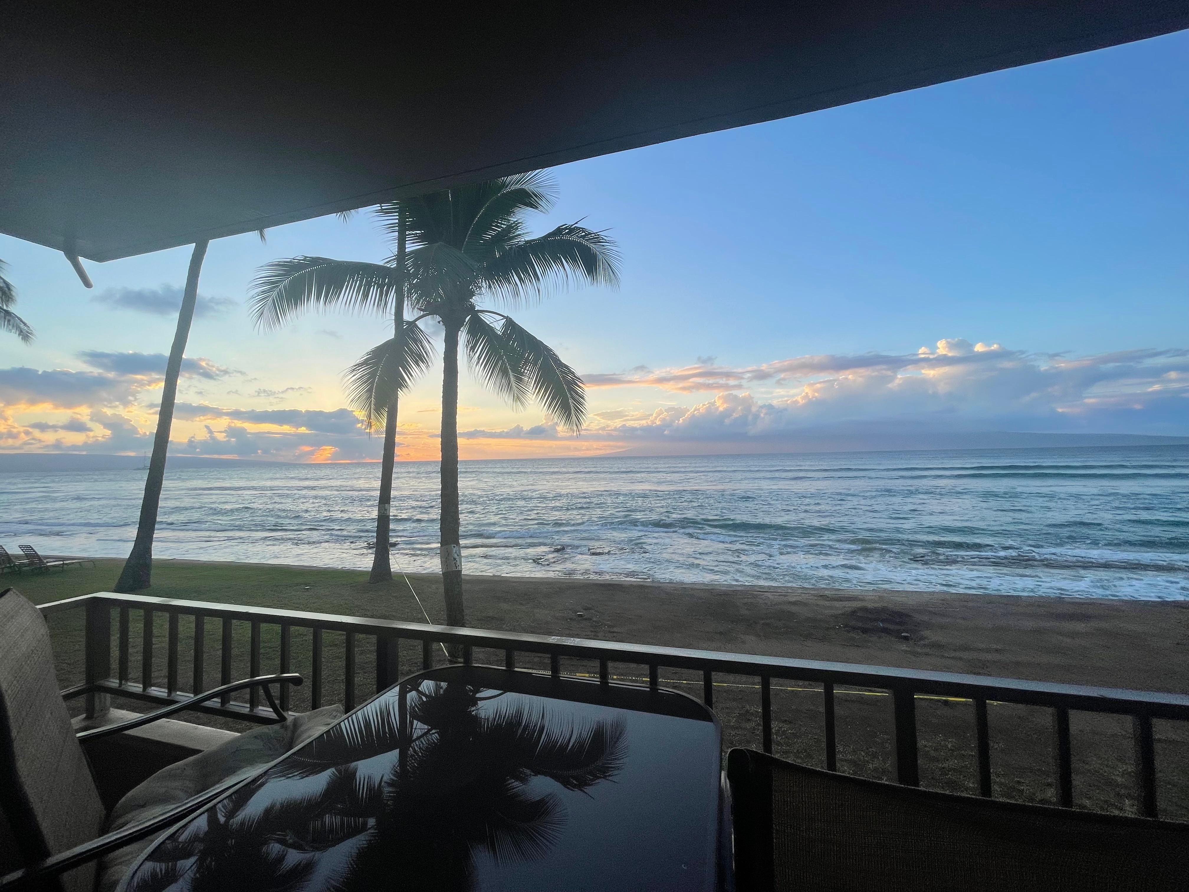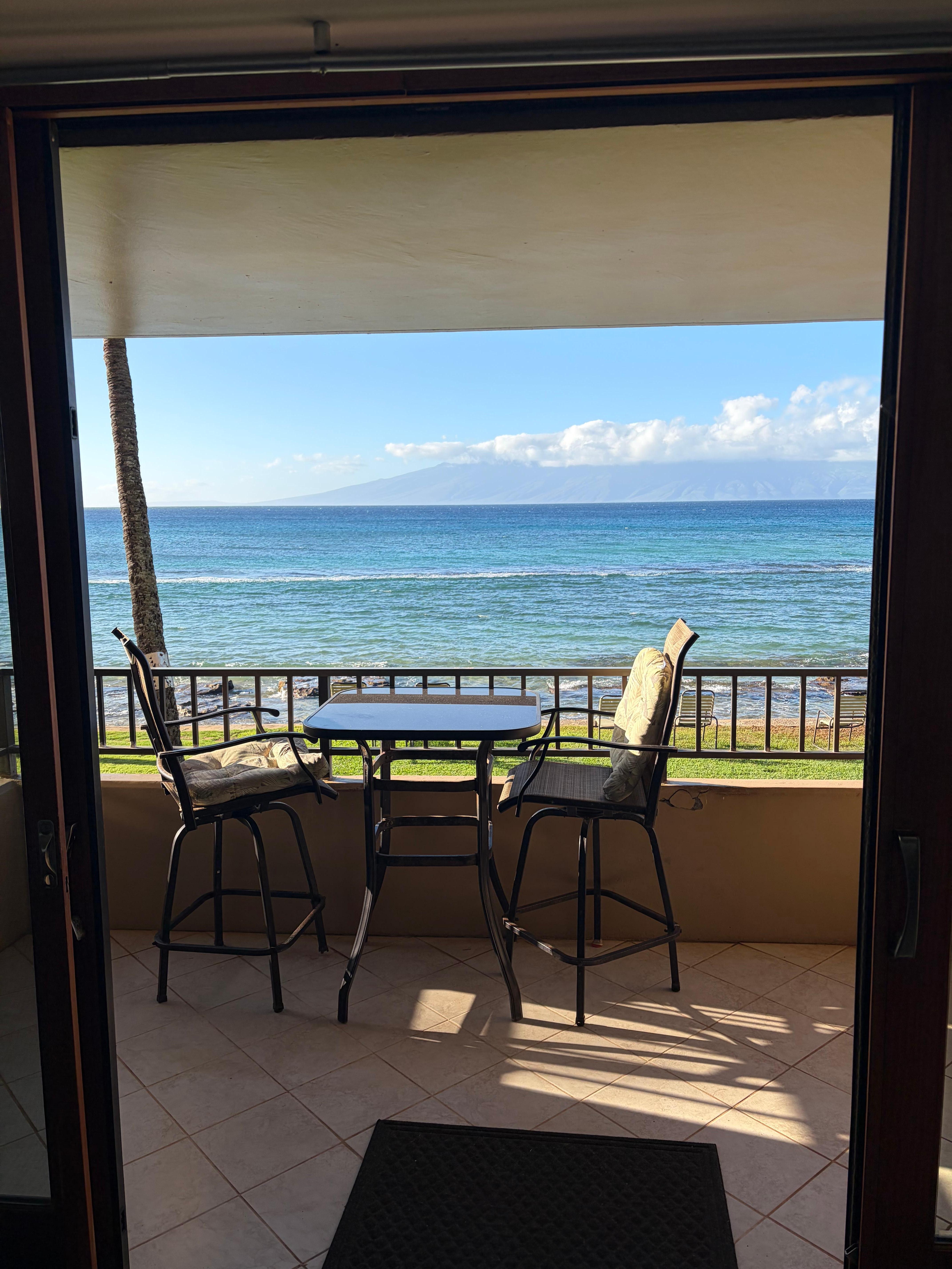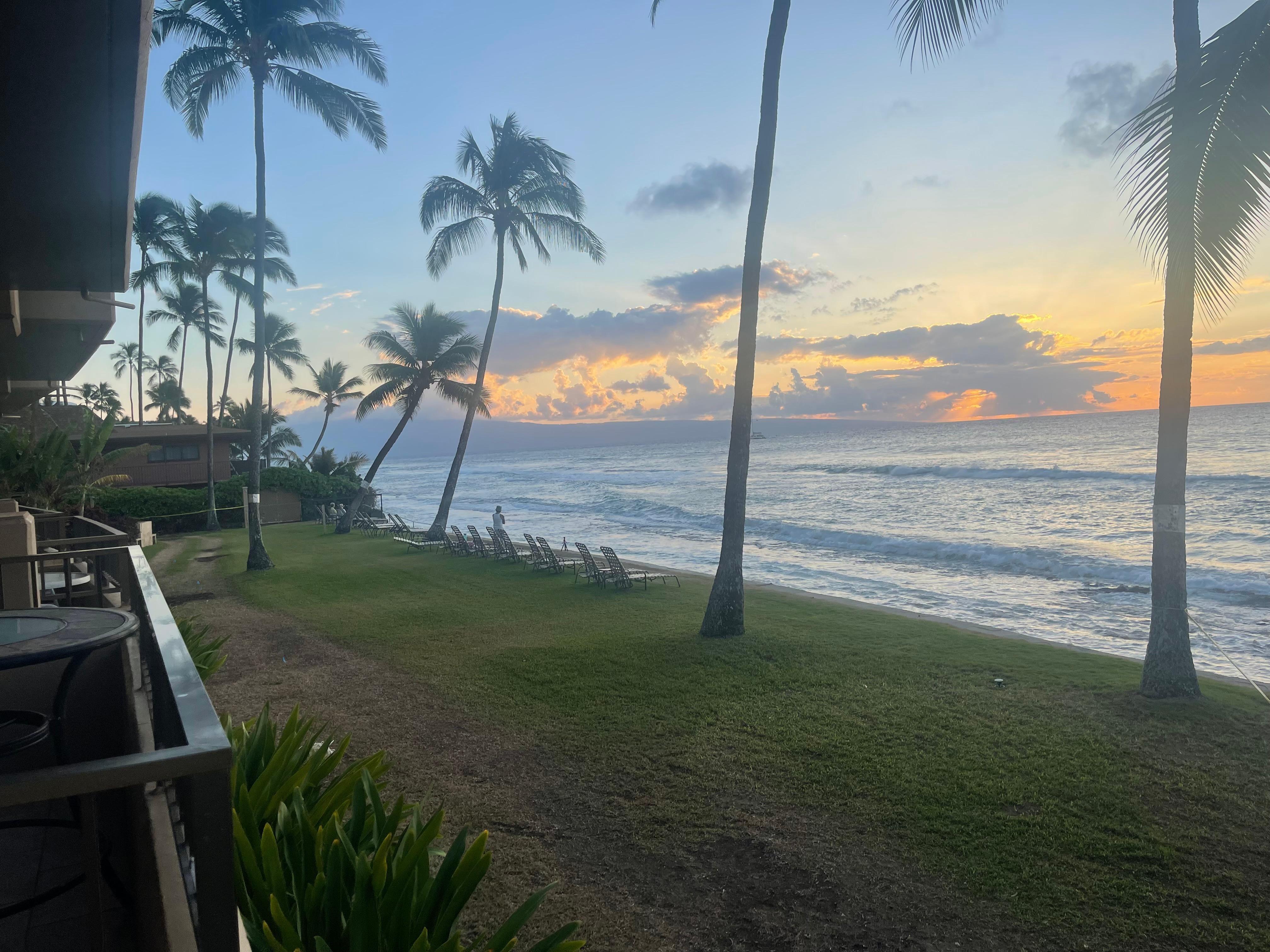 Die Wohnung befindet sich im 1. Stock, Einheit # 102. Auch wenn Sie sich keine Sorgen machen müssen, können Sie sich auf Ihrer privaten Veranda entspannen, da diese sich über dem Boden befindet. Sie können immer noch verlassen Sie Lanai Türen öffnen, die tropischen Passatwinde fühlen zusammen mit einer unglaublichen Aussicht auf die Inseln Molokai und Lana'i mit und lassen Sie uns nicht über unsere atemberaubenden Hawaii-Sonnenuntergang vergessen, die eine bleibende Erinnerung sein wird. Wenn Ihre Reisen Sie von Mitte Dezember bis April nach Maui bringen, werden Sie mit dem magischen Erlebnis verwöhnt, die Wanderung der unglaublichen Buckelwale in die warmen Gewässer von Maui zu beobachten. Beobachten Sie diese "sanften Riesen" von Ihrer Veranda aus im Kanal oder buchen Sie einen Ausflug mit einem lokalen Walbeobachtungsboot, bei dem Walbeobachtungen in dieser Zeit praktisch garantiert sind. Das ganze Jahr über kann man Schoten von Spinnerdelfinen und riesigen grünen Meeresschildkröten beobachten. Gelegentlich sehen Sie eine Mönchsrobbe, die in der Nähe vorbeikommt, um eine lange Pause einzulegen.