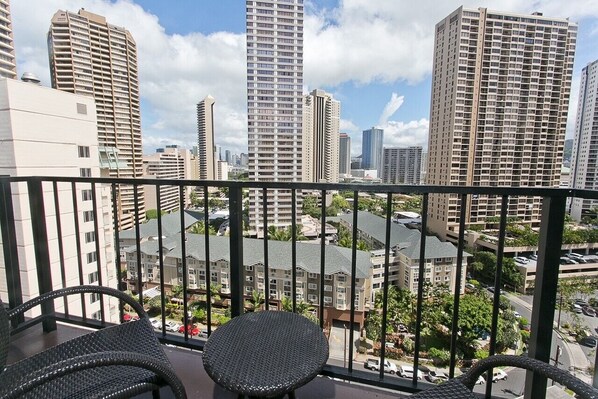 Fully modernized 10th floor studio at The Palms Hotel on the West side of Waikiki - Close to Fort DeRussey, Ala Moana shopping center and Magic Island beaches, tennis courts and the Marina.