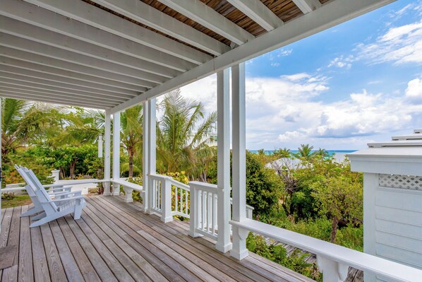 Indulge in the ultimate relaxation on the covered decks adorned with locally crafted Adirondack chairs and relaxing rocking chairs. Take in unimpeded views of the beach, Atlantic Ocean, and Hope Town Lighthouse. Breathe in the fresh ocean breeze as you soak in the breathtaking vistas that surround you. Rinse off the sand and saltwater in the refreshing outdoor shower, a delightful way to reconnect with nature after a day of beach combing or swimming in the crystalline waters.