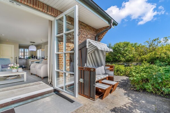 Dünenseele - Modernes Ferienhaus mit 3 Schlafzimmern mit Terrasse, Strandkorb