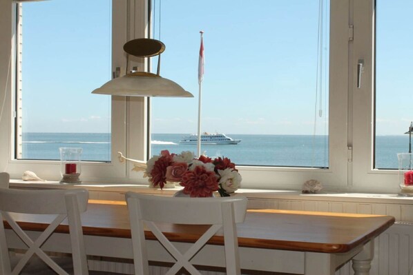 Vom möblierten Balkon genießen Sie den herrlichen Weitblick auf das Meer und können das Leben auf der neu gestalteten Hörnumer - Standpromenade und die vorbeiziehenden Ausflugsschiffe entspannt beobachten.