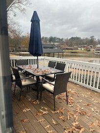 Highly recommend staying at this property. On the lake but close to shopping and a grocery store! Kitchen was stocked with cooking supplies. We spent a lot of time on the covered dock, swimming and kayaking.