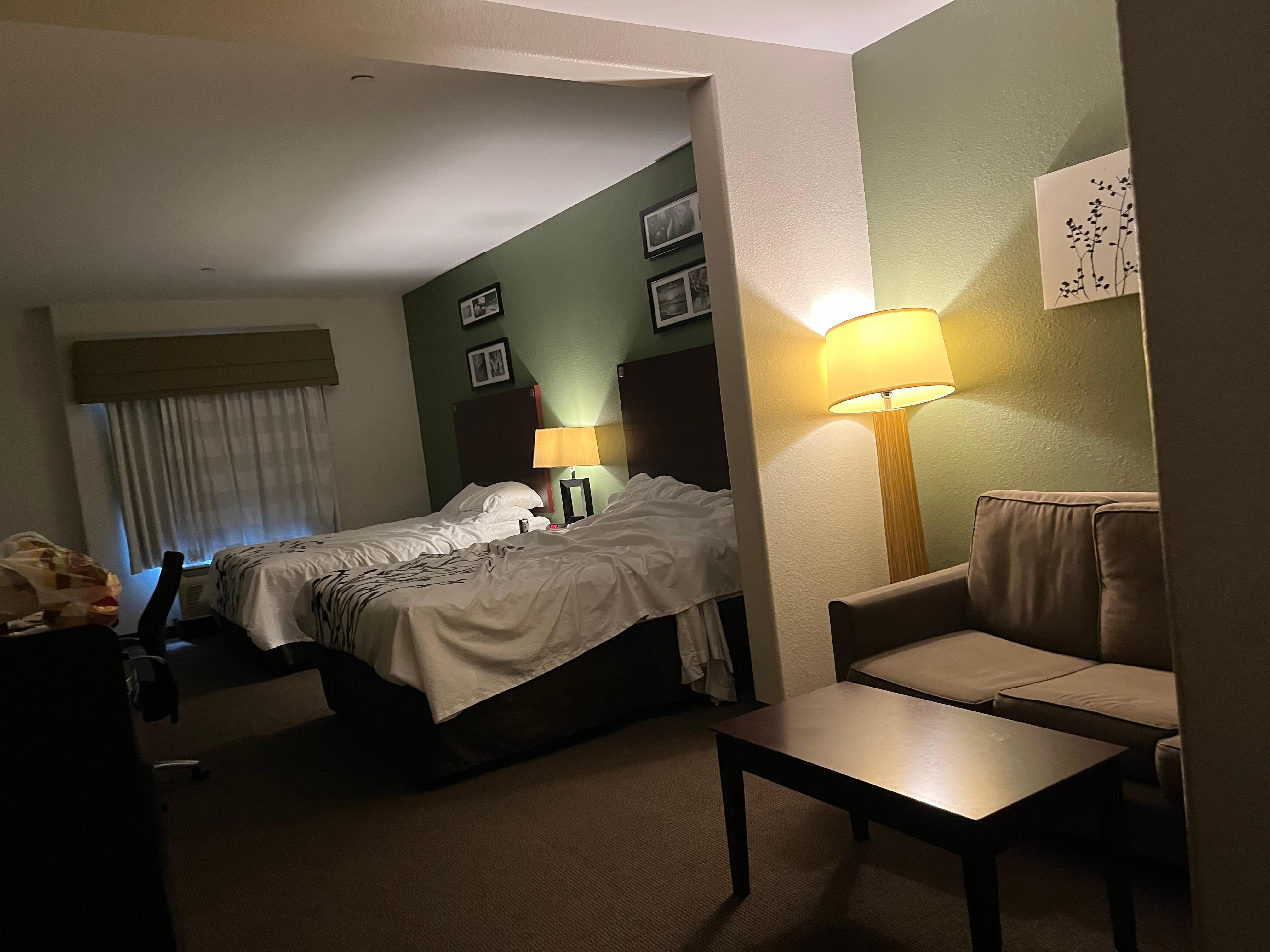 There will small bugs flying around the room. Staff only provided us with 2 towels and we had 3 people in our room. Also didn’t provide wash clothes daily. The hot tub was colder than the pool and filthy. No way to make it warmer. The breakfast was not great. No yogurt, fresh fruit and not many choices. The room itself was very spacious. The rooms weren’t cleaned other than replacing towels and emptying trash.
